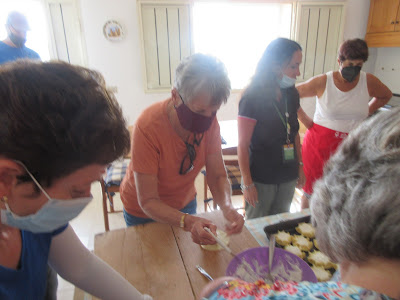When we left the barn, the courtyard area had tables set up for our lunch. Everyone joined in setting the tables and bringing out the food. Our bread looked wonderful.